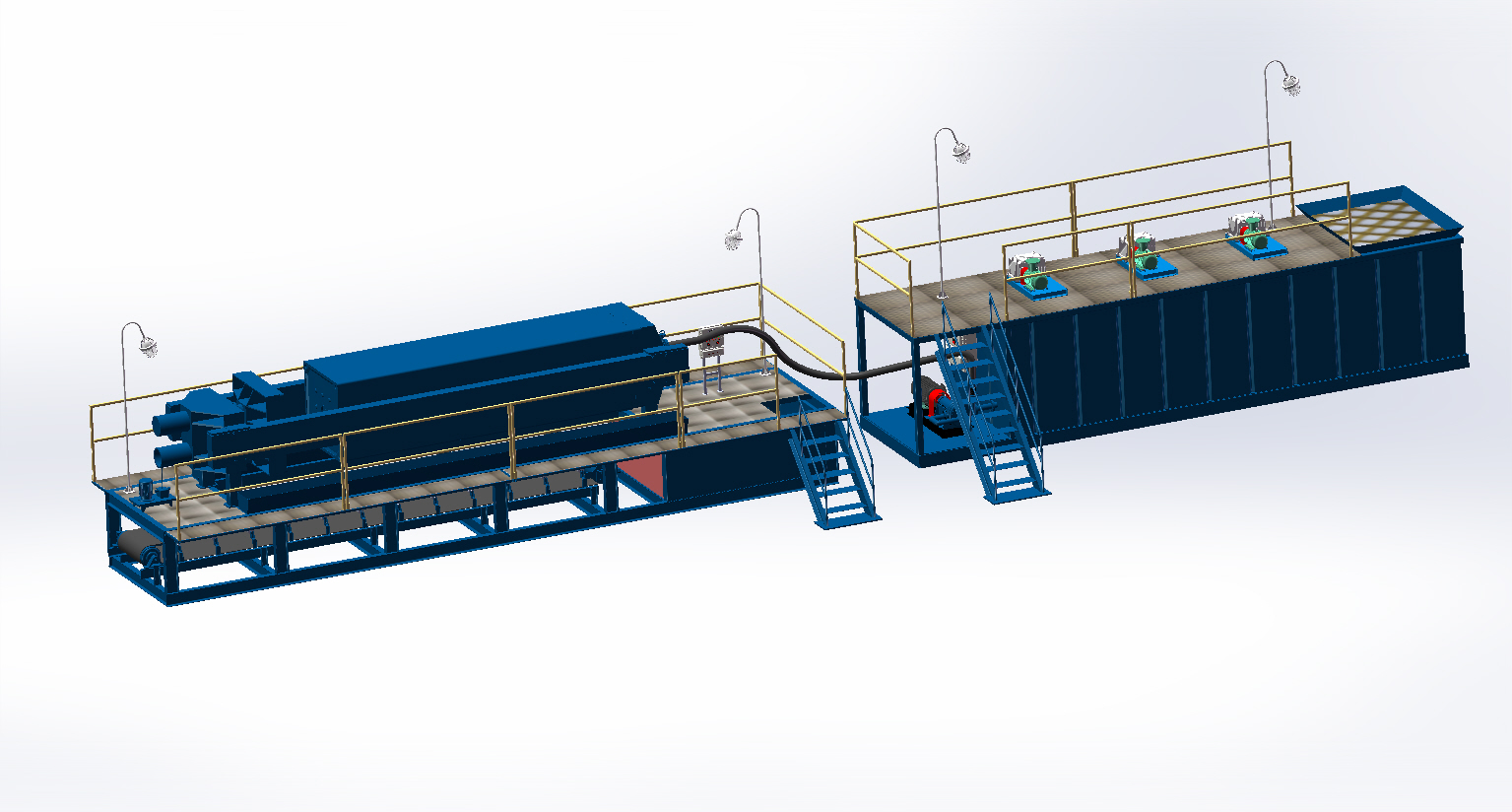 2、工藝簡單,操作方便,處理效率高,滿足9000米以內(nèi)的隨鉆處理,處理后的固相含水率(體積百分比)在40%-70%之間;